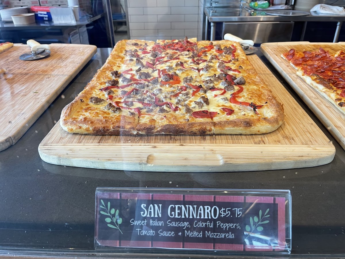 The pizza was a bit salty for my taste but not bad. They heat it up and it tastes fresh price was $5.17 for grandma slice. I will definitely come back here again.